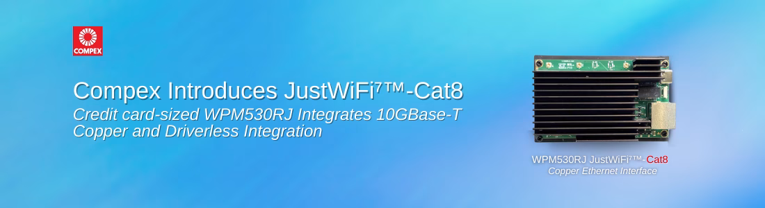 Following the successful launch of JustWiFi⁷™-Fiber (WPM530), Compex Systems (Compex) introduces the newest addition to the driverless JustWiFi⁷™ family: the JustWiFi⁷™-Cat8 (WPM530RJ).